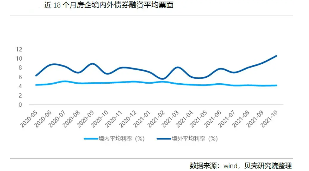 事实上,房企境外债利率已经连续三个月维持大幅增长。贝壳研究院数据显示,10月房企境外债券利率均值突破10%的高点,达到10.65%,较9月大幅上升157个基点。