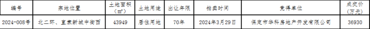土拍丨保定主城区1宗居住用地成功出让 华科地产拿地