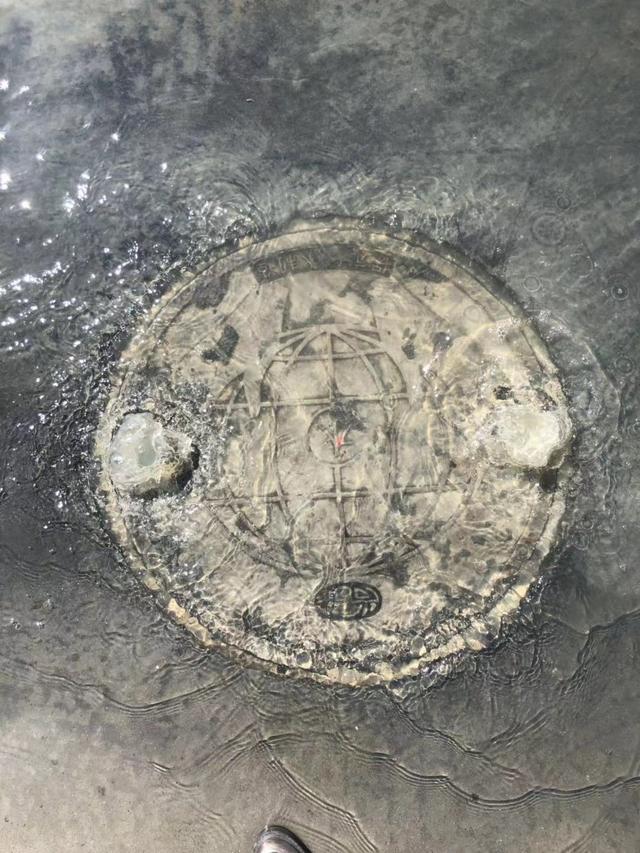 在现场记者看到,该小区门口附近的华电路上,路南有3个井盖正在向外冒水,上面分别写着“污”“雨”和“水”字样。同时,在路北也有1个写有“污水”的井盖正在冒水。