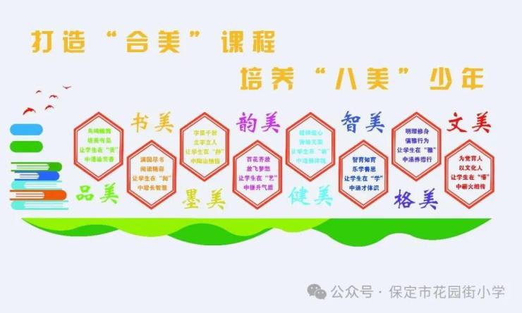 学校一直秉持着“让美伴随孩子一生”的办学理念,致力于为每一位学生提供多元化、个性化的课程体验,培养孩子发现美、体验美、创造美的能力。学校构建以国家课程为主体、地方课程和校本课程为拓展的“合美课程”体系,开设了品德与成长体验课程,语文与经典阅读课程,数学与思维培养课程,英语与交际课程,体育与运动健康课程,艺术与审美课程,信息与创新等课程,让课程成就学生的发展,培养“八美”好少年。
