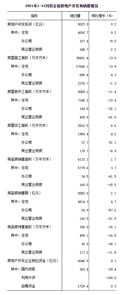 河北省统计局:2021年1-12月份全省房地产开发和销售情况