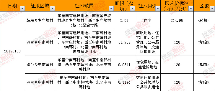 2019年1月8日征地详情如下:
