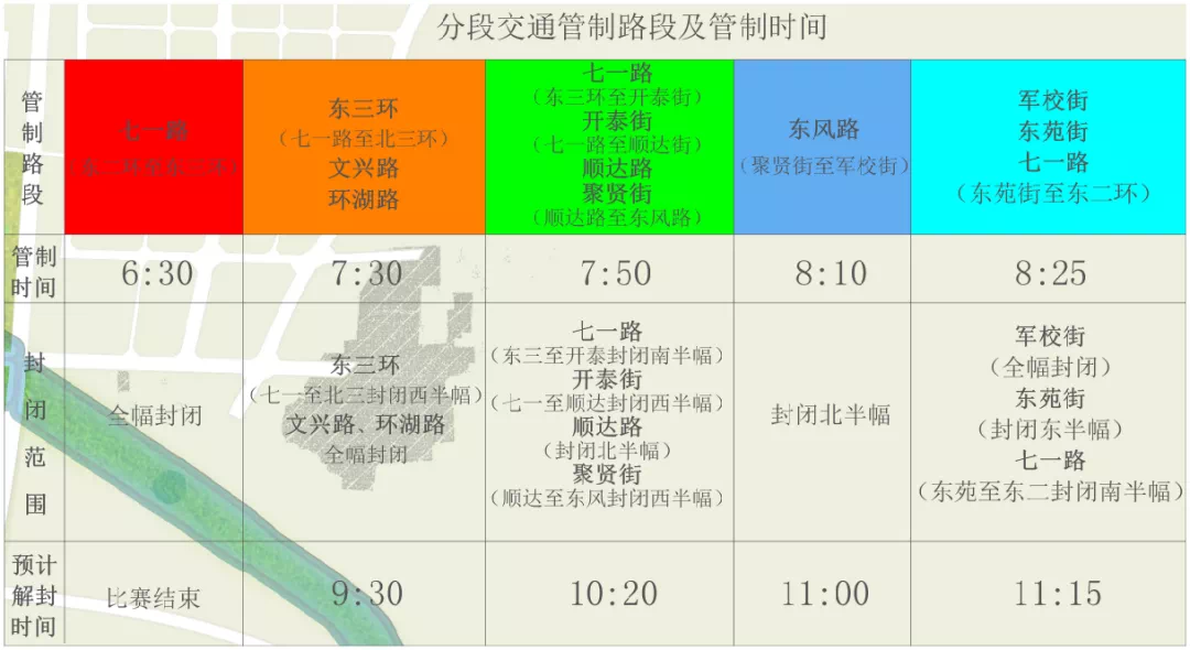 2、10月9日17:00起,赛道全段(含机动车道、非机动车道、人行道的停车泊位)禁止停放各类机动车、非机动车。具体路段包括:七一路的东苑街至开泰街、东三环的七一路至北三环、文兴路、环湖路、开泰街的七一路至顺达路、顺达路的聚贤街至开泰街、聚贤街的顺达路至东风路、东风路的聚贤街至军校街、军校街、东苑街。