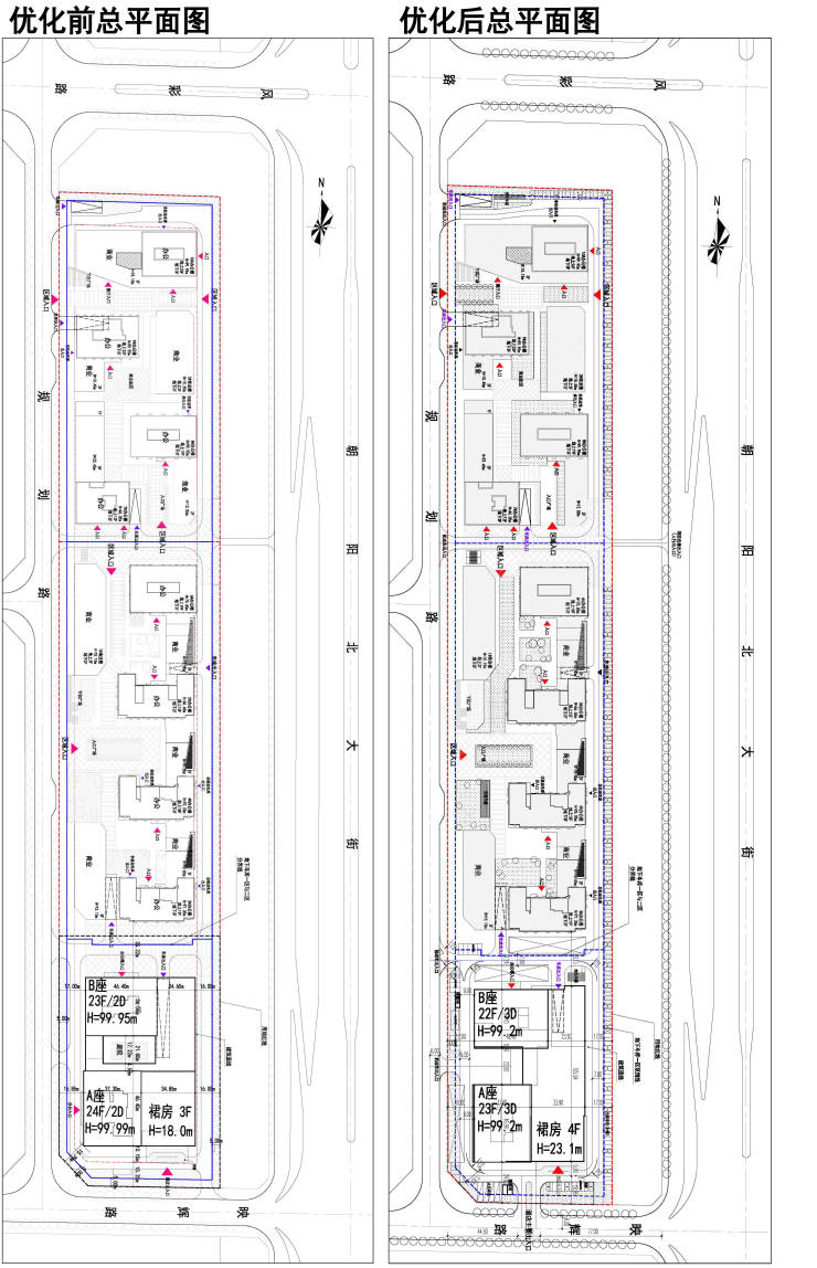 方案优化后总体规划布局不变建筑风貌不变,容积率、建筑密度、退距、日照等各项指标均满足国家相关规范要求。
