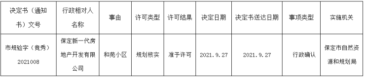 保定新一代房地产开发有限公司和苑小区规划核实。
