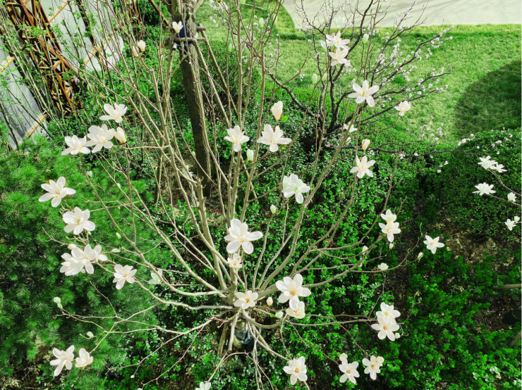 玉兰九赋三季有花,四季有景,让人的美好心境能够投射到优美的园林景色中。