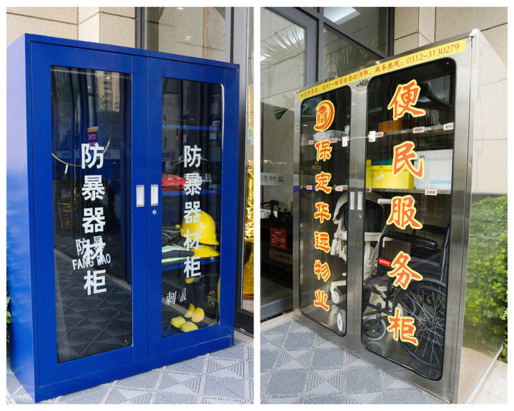 会所门口配置了便民服务箱,针线、口罩,收音机,体重秤,工具箱,小药箱一应俱全。还有轮椅、童车等器械,在业主行动不便时,及时提供帮助,或为业主提供借用服务。
