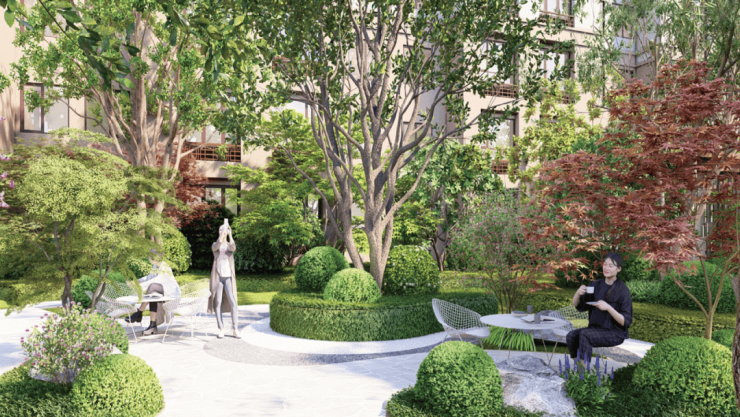 打造新中式归家礼序,规划樱花大道 / 萌宠乐园 / 儿童奇趣乐园 / 活力跑道等 8 大主题空间,满足全龄段休闲需求。