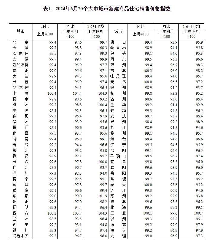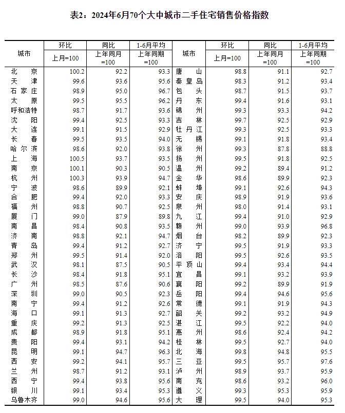 6月70城商品住宅销售价格环比降幅总体收窄,京沪二手房价格年内首次转涨