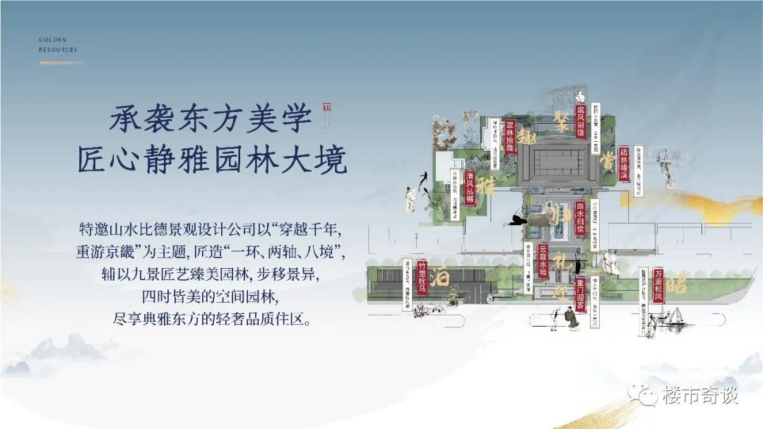京畿九景图;则提取于千年古画的生活人文意境, 包含有:竹里拴马,万壑松风,重门迎客,云庭水境,四水圭塘,疏林缘溪,庭风别馆,翠林拾趣,清风丛樾,九大意境作为九大景观节点;如果你觉得我说的不够准确,可以到该项目的营销中心,实地参观。