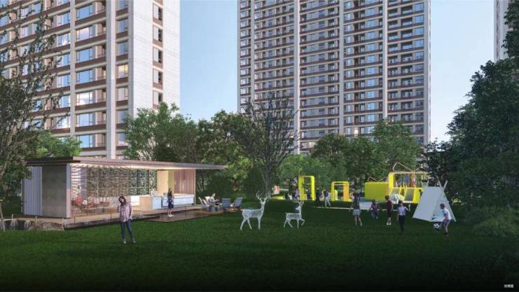 脉承绿城桂语系产品肌理,更加强调横向线条的拉通,打造简洁与优雅并重、形制与仪式并融的建筑形象,搭配超大窗墙比,营造光幕美学立面。