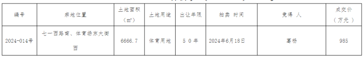 2024年6月18日,保定主城区一宗体育用地成功出让,地块位于七一西路南、体育场东大街西,拍卖地块总面积6666.7平方米,约合10亩,成交价为985万元。保定市公共资源交易中心国有建设用地使用权拍卖出让结果…