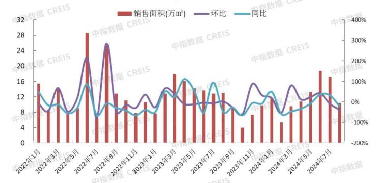 图:2022年-2024年8月保定主城区商品住宅(不含保障房)月度成交情况
