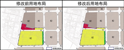 规划拟将乐园路(三号路——风能大街)线形向北调整,调整后路北仍按商务、二类居住用地控制,路南仍按二类居住用地、防护绿地控制。