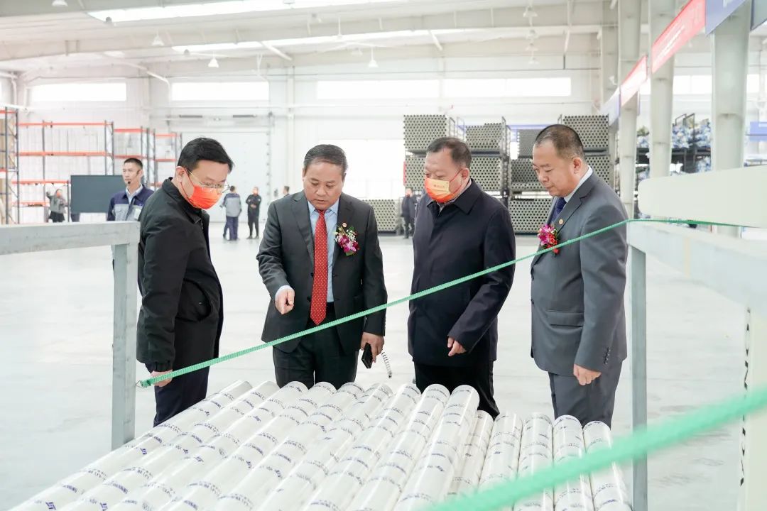 在投产启动环节,领导们共同按动能量柱按钮,为产业园的发展注入新动能。伴随着金色礼花喷射,巨型幕布迅速拉升,河北卓正建材产业园的全新生产线揭开神秘面纱。