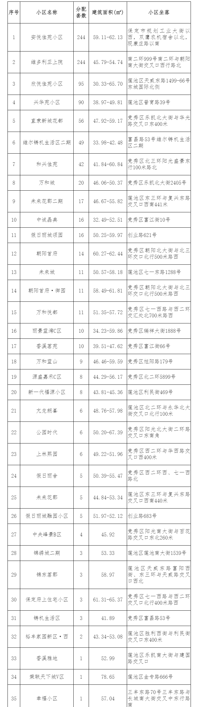 保定主城区1035套公租房即将配租 租金标准7元/平方米·月