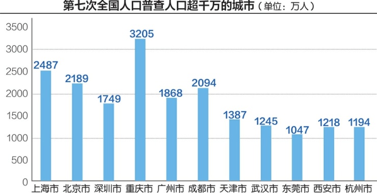 全世界人口超过1000万的国家有30多个,而根据国家统计局公布的较新城市评级,我国人口超过1000万的超大城市就有7个,500万以上1000万以下的特大城市有14个。