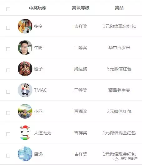 5、抽中实物奖品后,中奖者本人可于2月16日—24日,凭中奖页面兑奖码,至华中生活馆(假日雅典城底商华中地产咨询中心)领奖。