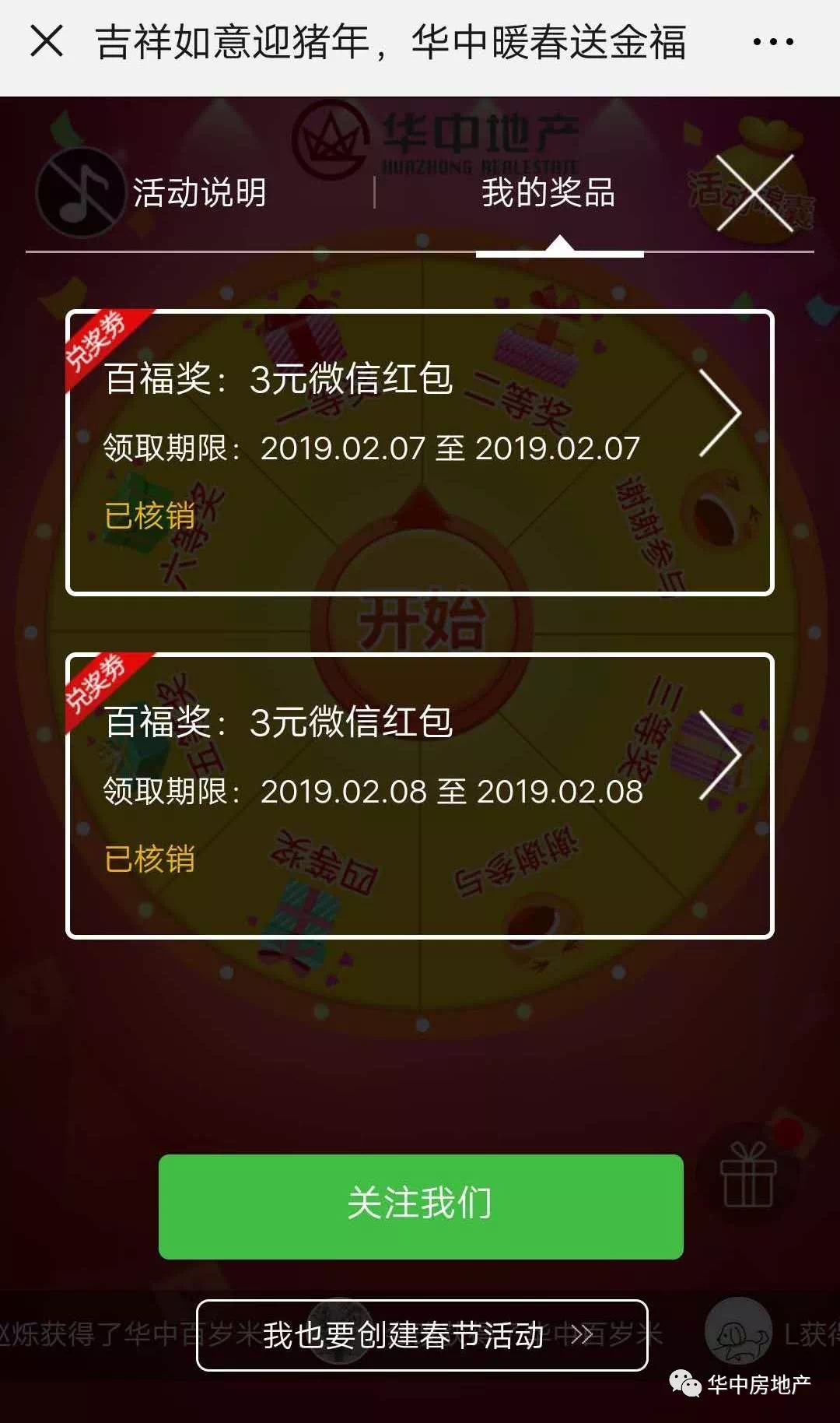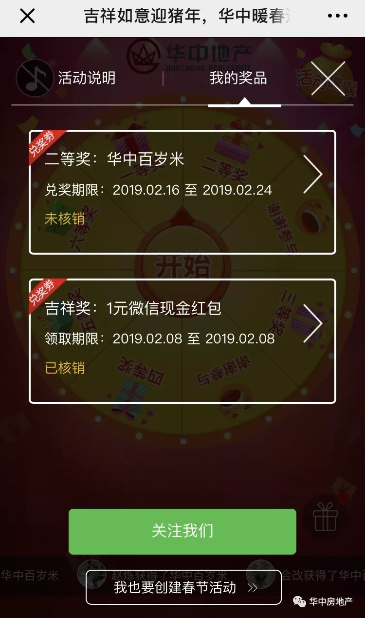 1、关注“华中房地产”微信公众号,点击“【内含福利】金猪送吉祥,华中有好礼!”文章末尾“阅读原文”,获取活动链接,即可参与幸运大转盘游戏。