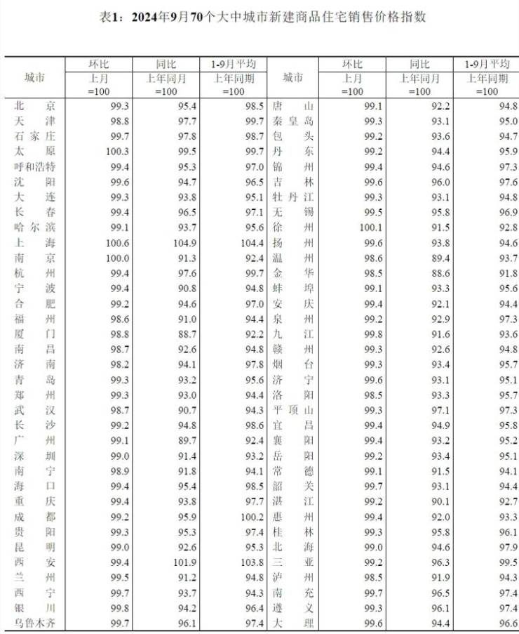 10月18日,国家统计局发布70城房价数据。对此,国家统计局城市司首席统计师王中华解读:“9月份,70个大中城市商品住宅销售价格环比降幅总体趋稳、同比降幅扩大。”