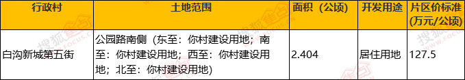2019年11月27日,保定市自然资源和规划局公布了一则征地告知书,白沟新城第五街征地面积2.4040公顷,约36.06亩。征地用途为住宅用地,区片价标准为每公顷127.5000万元。
