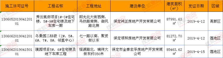 近日,保定主城区三楼盘获发施工证,包含秀兰宸府项目、冬景园(铂悦山)、璞园(京能春风里)。