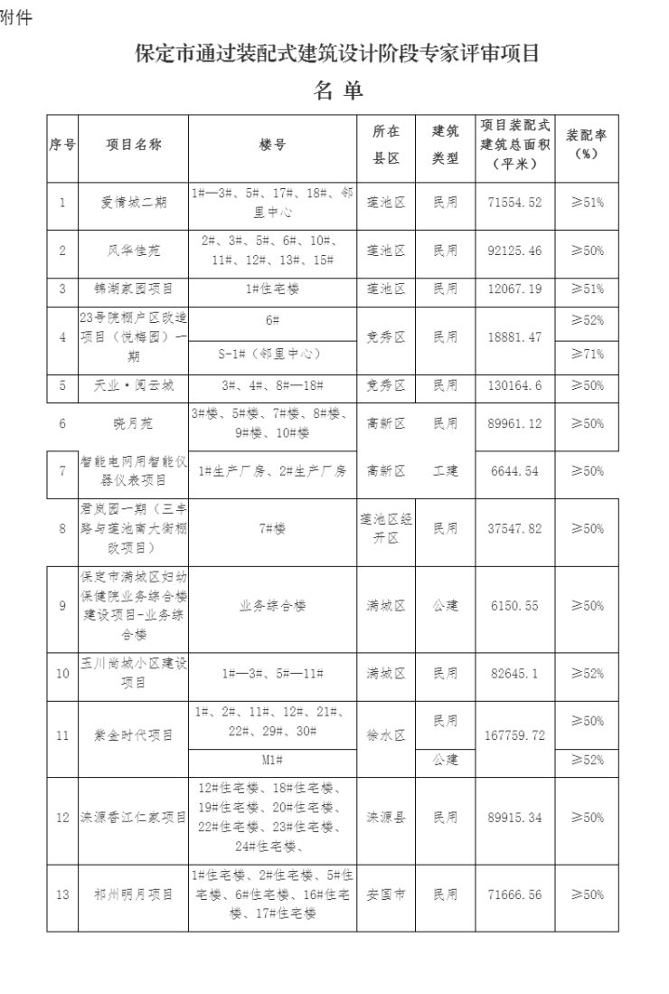 附件:保定市通过装配式建筑设计阶段专家评审的项目公示名单