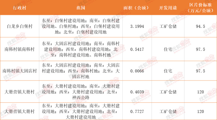 2019年11月26日,保定市自然资源和规划局公布了5则征地告知书,公告显示,满城区4村征地4.9243公顷,约合73.8645亩。涉及白龙乡白堡村,南韩村镇南韩村、大固店村,以及大册营镇大册村,征地用途含工矿仓储和住宅用地。【征地详情 见下图】