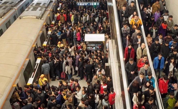 早高峰人满为患的地铁